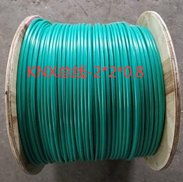 樓宇自控KNX總線電纜2x2x0.8屏蔽雙絞線J-Y(ST)Y型實物圖通訊總線電纜 EIB UNITRONIC BUS,KNX總線電纜2x2x0.8屏蔽雙絞線J-Y(ST)Y專為大樓中央管理系統如空調、暖氣、通風、定時、能源系統、門鎖等的控制管理而設計。該電纜主要由傳感(發射信號)和反饋(接收信號)兩部分組成。該總線電纜可安裝敷設于干燥和潮濕的空間、走線槽或管道內。基于帶屏蔽安裝電纜,符合DIN VDE 0815規定,0.8mm實芯裸銅絲導體,電纜尺寸為2X2X0.8mm。4根實心導體絞合成一星絞組,芯線顏色為線對1、紅/黑和線對2、白/黃。覆鋁塑料薄膜屏蔽,電纜在水槽中以4kV高壓(1分鐘)做高壓測試。外護套為PVC綠色,同時還有無鹵型可供選購。