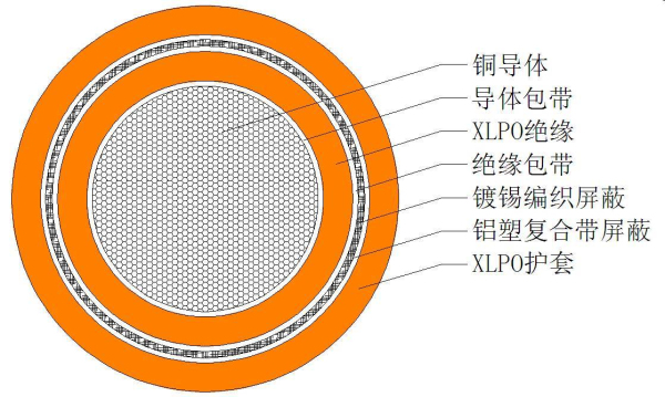 該電纜用于新能源汽車用高壓系列控制電纜;導體柔軟度高;絕緣及護套材料具有十分優異環保要求(RoHSREACH、低煙、無鹵),電纜安全可靠性高。
